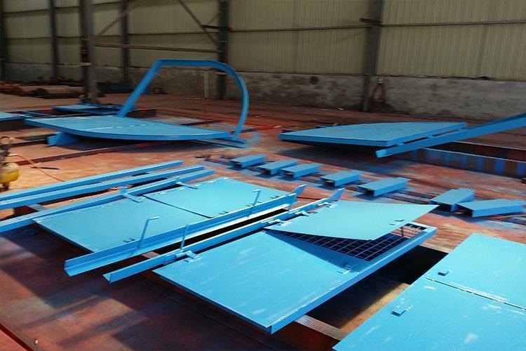 防火柵欄門(mén)是防火門(mén)與柵欄門(mén)的結(jié)合體,因此具備了兩者的特點(diǎn),目前的使用是非常廣泛的,主要用于主變電所與水泵房防水門(mén)來(lái)水側(cè)、消防器材庫(kù)、材料庫(kù)等。防火柵欄門(mén)平常具有通風(fēng)功能,一旦遇到異常情況時(shí),就具備了防火功能,其結(jié)構(gòu)簡(jiǎn)單,操作方便。主要是在煤礦井下主排水泵房和主變電所硐室之間使用,在危險(xiǎn)環(huán)境下防火柵欄門(mén)能夠起到隔離火源的作用,防止火險(xiǎn)的蔓延。