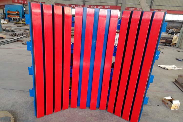彈簧式緩沖床在原來緩沖床床體下面增加了一種裝置—彈簧緩沖裝置,這樣做用于輸送物料大、落差高的情況。有效提高了對落料的緩沖效果,同時也提高了緩沖床自身的抗沖擊強(qiáng)度,延長了緩沖床的壽命。相應(yīng)地提高了整個輸送系統(tǒng)的工作效率,安全性高。彈簧式緩沖床適用于各類帶式輸送機(jī),特別適用于長距離、高運(yùn)速、大運(yùn)量、高強(qiáng)度、工況惡劣的帶式輸送機(jī)。